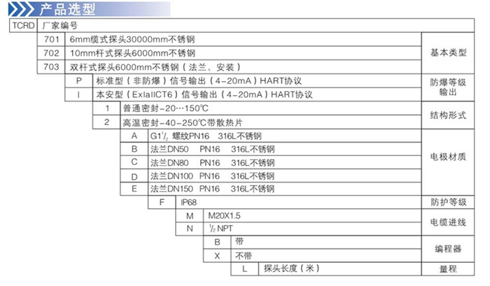 為了能更好的為您提供服務,請您根據(jù)您的實際情況,參照選型指南(未盡事項,請來電咨詢),慎重選擇適合您具體需求的產品。當您了解您的需求和我們產品的基本屬性后,可根據(jù)設計要求和現(xiàn)場情況正確選用儀表并按完整的產品規(guī)格代碼定貨。